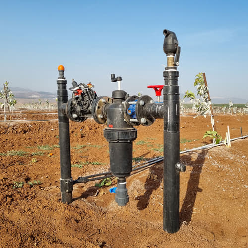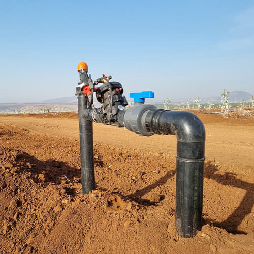 To support air control during filling and prevent vacuum conditions during pipeline drainage, BERMAD’s C10 composite combination air valve is integrated in the system. The C10 is a high quality combination air valve suitable for a wide range of irrigation networks and operating conditions. It evacuates air during pipeline filling, allows efficient release of air pockets from pressurized pipes, allowing large volume air intake in an event of a network draining. Integrating air valves within the system enhances efficiency, saves energy, protecting the system from pressure surge.