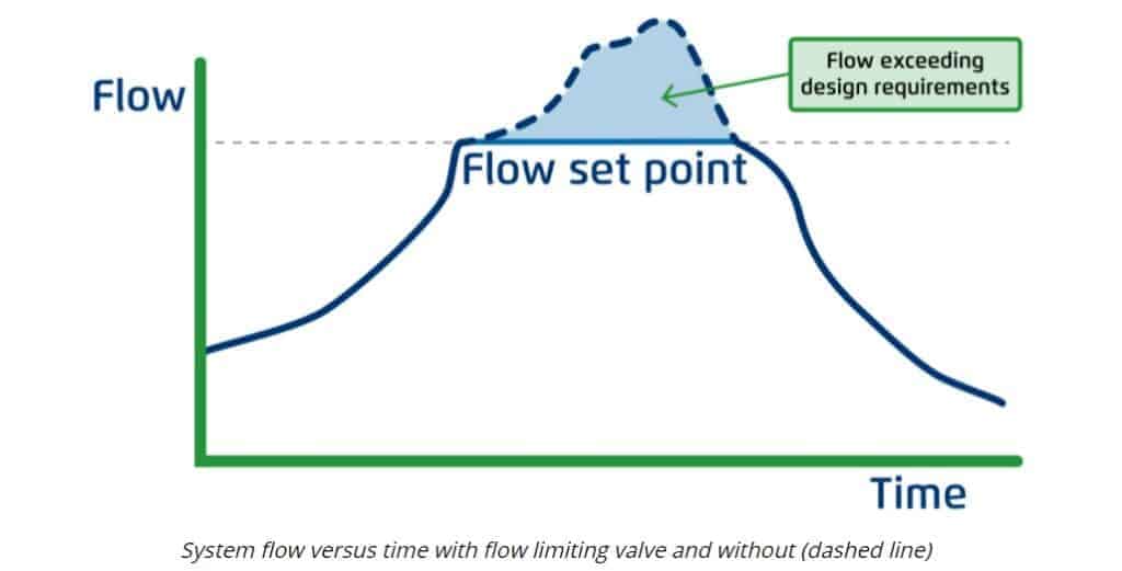 Los diseñadores utilizan válvulas de control de caudal para asegurar que el caudal no supere el valor para el que fue diseñado el sistema, dándole prioridad sobre los usuarios cuando intentan consumir más de lo especificado.