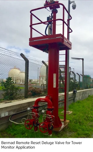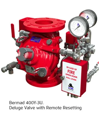 Remote resetting is a new concept in deluge valves and is offered as a feature of the BERMAD 400Y-3U remote reset deluge valve. Just as with standard deluge valves, actuation may be remote and may take place manually or automatically. However, while the resetting is manual, it is not restricted to being local and an operator can reset the valve from a remote location. This can save time and eliminate the need to send employees into a potentially dangerous post-fire environment. The BERMAD 400Y-3U remote reset deluge valve meets the specifications for FM-approved and CE-marked valves.