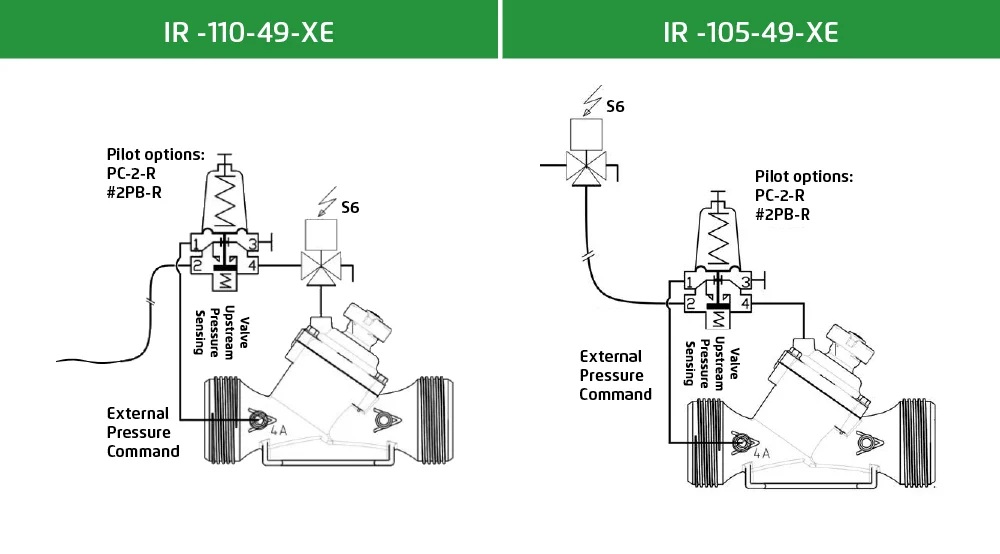 Valve: IR-2″-100 series, commanded by external pressure (no specific application is detailed)