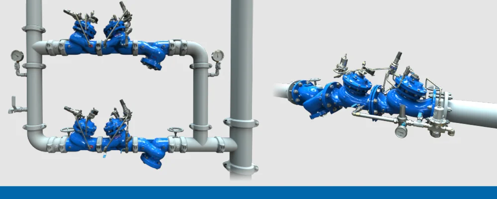 This is a full system provided by BERMAD and Victaulic. Pre-engineered, preset, and assembled in our BERMAD factories, this system offers comprehensive support for your drinking water system. Our full redundancy system provides a 720-PD proportional valve for first stage pressure reduction, a main 720 PRV for second stage pressure reduction, and a 794 excessive shut-off valve for extra pressure safety. The best part? It comes ready-made for easy installation on site. Yes, that includes the frame!