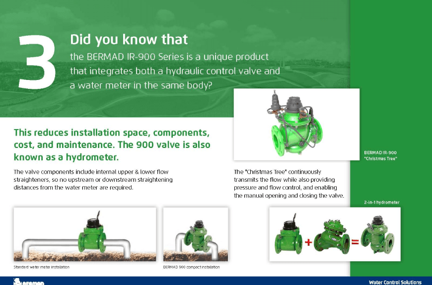 The BERMAD IR-900 Series is a unique product that integrates both a hydraulic control valve and a water meter in the same body? And it’s also referred to as a “Christmas Tree”!