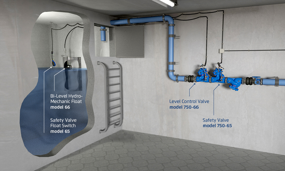 The prevalent practice for this application is to install hydraulic valves operated by hydro-mechanic floats or electric solenoids with the addition of level-sensing accessories (float switch, ultrasonic sensor, et cetera).