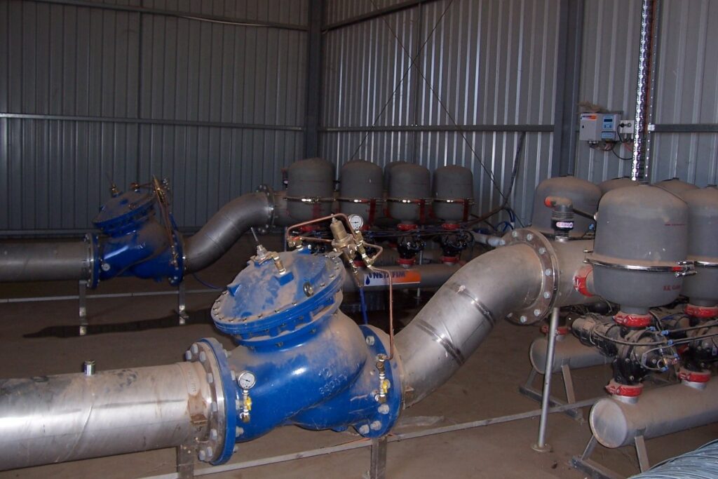 In irrigation pump stations there are often a variety of self-cleaning filters – ranging from disc, screen or media filters – which protect the irrigation infrastructure. Self-cleaning filters require a minimum amount of pressure to enable a thorough clean. Subsequently, there is often a need for a pressure sustaining valve to be located directly under the filter. This allows the filter to operate as designed and ensure that a pump does not run off the curve when a system is first charging sub mains.